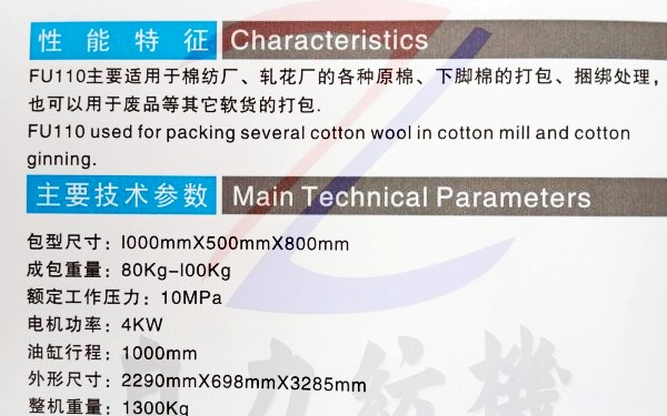 FU110型打包機(立式,液壓)的產(chǎn)品詳細介紹: